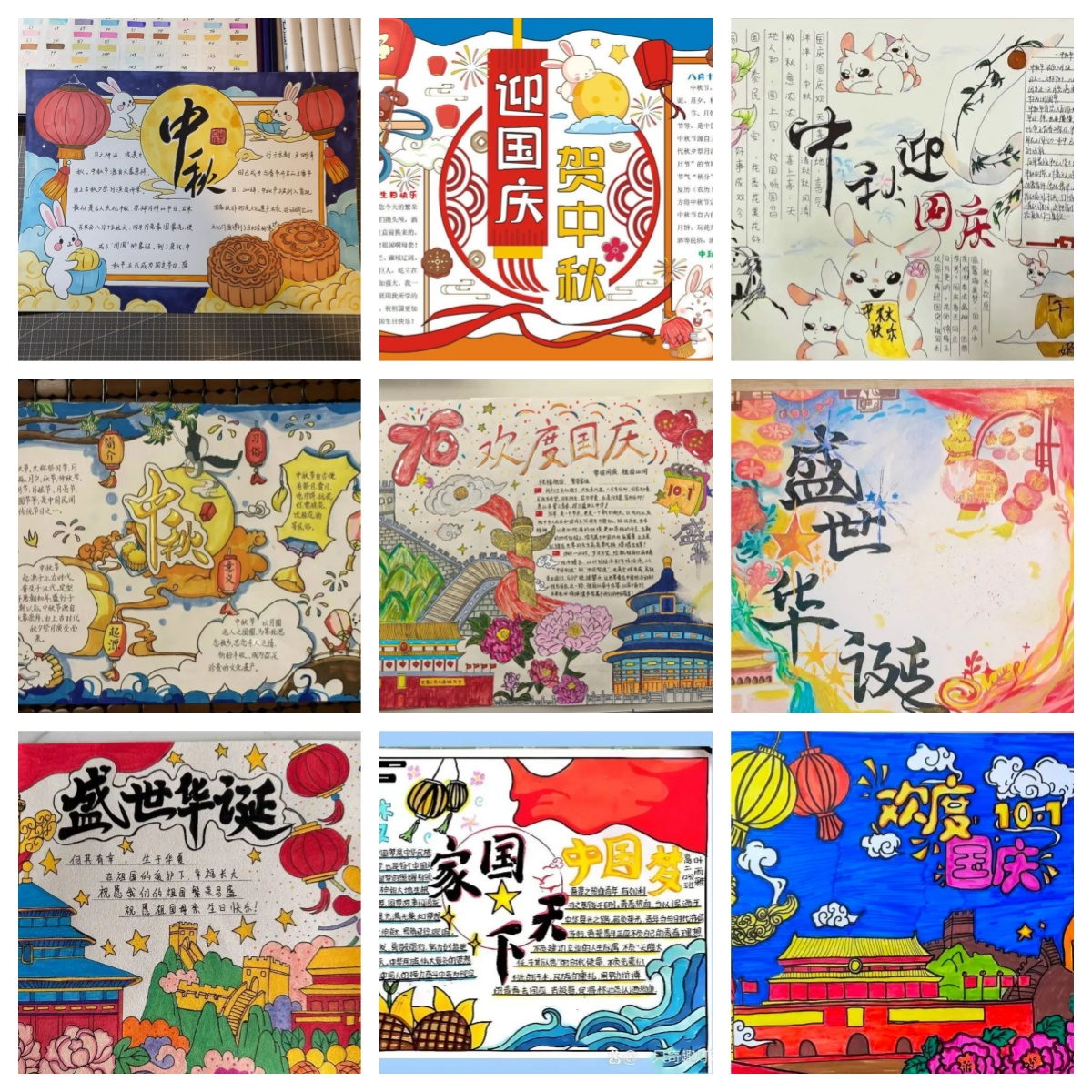 同学们充分发挥想象力与创造力,用画笔和文字将壮丽的天安门、飘扬的五星红旗等国家象征,与圆月、灯笼、月饼、家人团聚等温馨的中秋元素巧妙融合。一幅幅精美的手抄报,不仅是艺术才华的展示,更是同学们对国泰民安、家国团圆最真挚的情感表达。