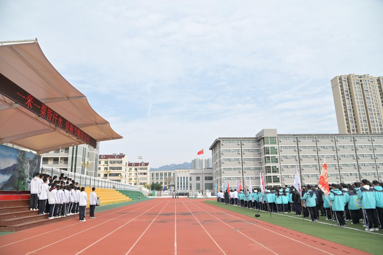 伴随着激昂的《义勇军进行曲》,五星红旗冉冉升起,全体师生肃立行注目礼,爱国情怀与节约意识在阳光中凝聚。