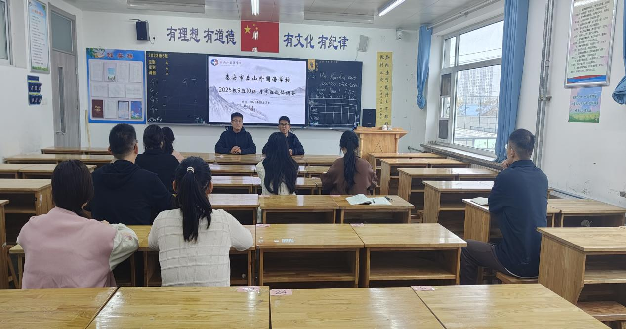 为精准把握学情、优化教学策略,近期,泰安市泰山外国语学校 2025 级部以 “数据赋能、协同共进” 为目标,组织召开 10 月月考成绩分析会。本次会议采用 “两两结对” 模式,10 个教学班级两两联动召开班级协调会,班主任、学科教师齐聚一堂,在交流碰撞中明确方向,为下一阶段教学管理注入新动能。