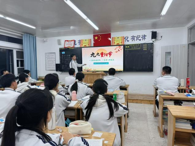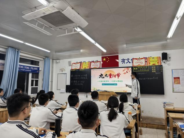节日之美,在于文化的传承。各班级利用班会课时间,开展了形式多样、内容丰富的重阳节主题班会。通过精心制作的视频、图文并茂的PPT,老师们引领学生穿越历史长河,探寻重阳节的起源,了解登高祈福、秋游赏菊、佩插茱萸、饮菊花酒等传统习俗的由来与寓意,品读那些承载着千年底蕴的经典诗词。一堂班会,不仅是一次知识的普及,更是一场文化的洗礼,让传统文化的根脉深深植入学子心田,增强了他们对民族文化的认同感与自豪感。