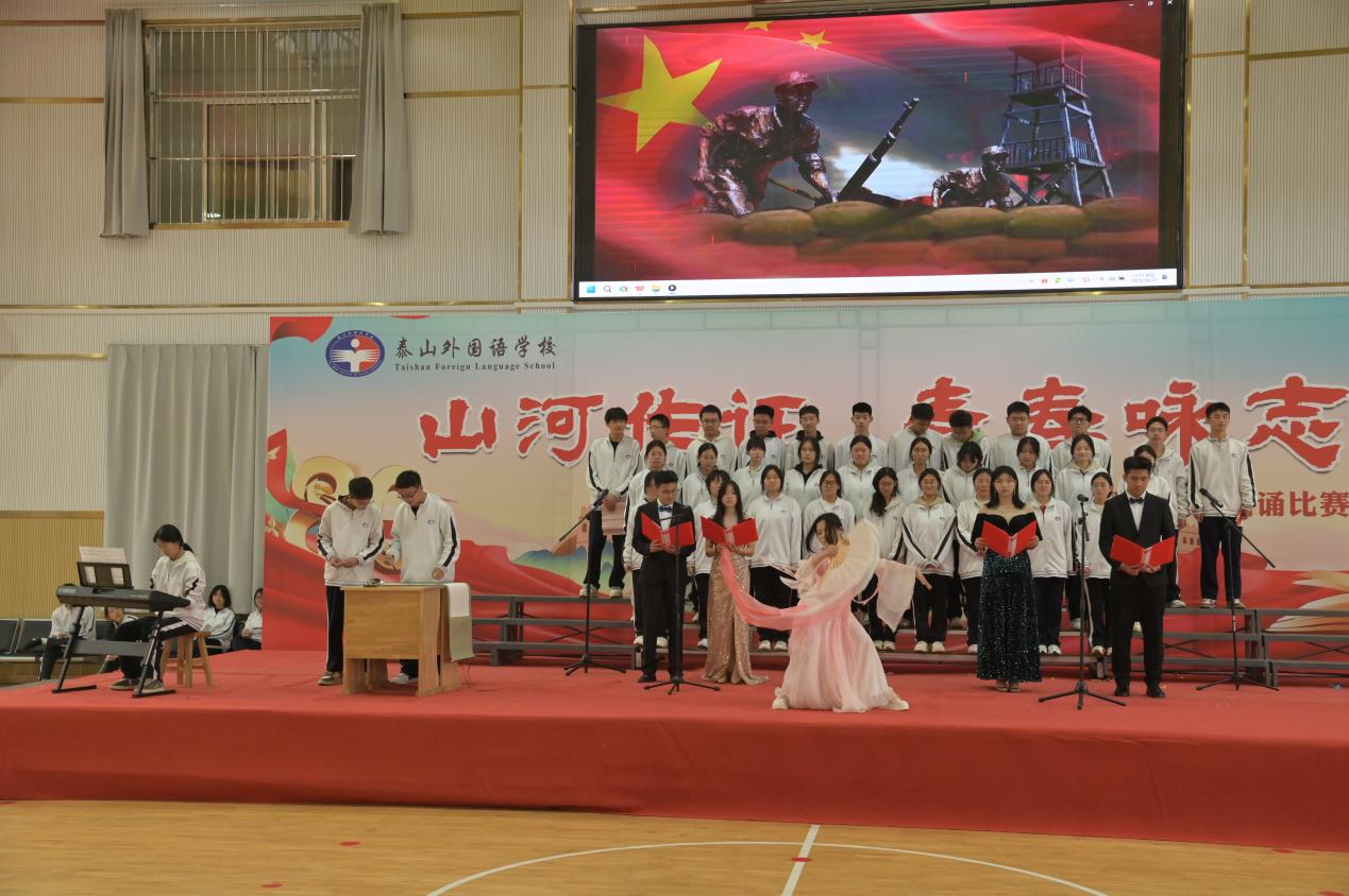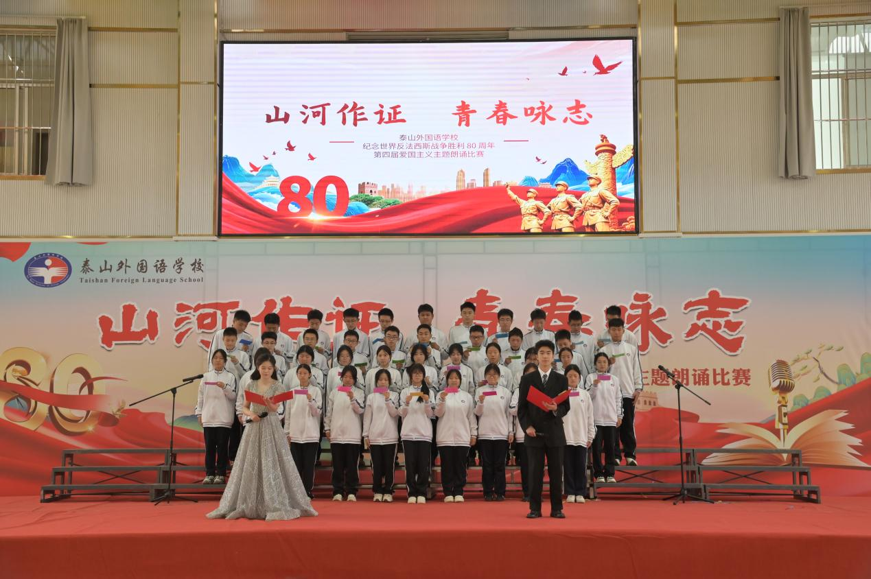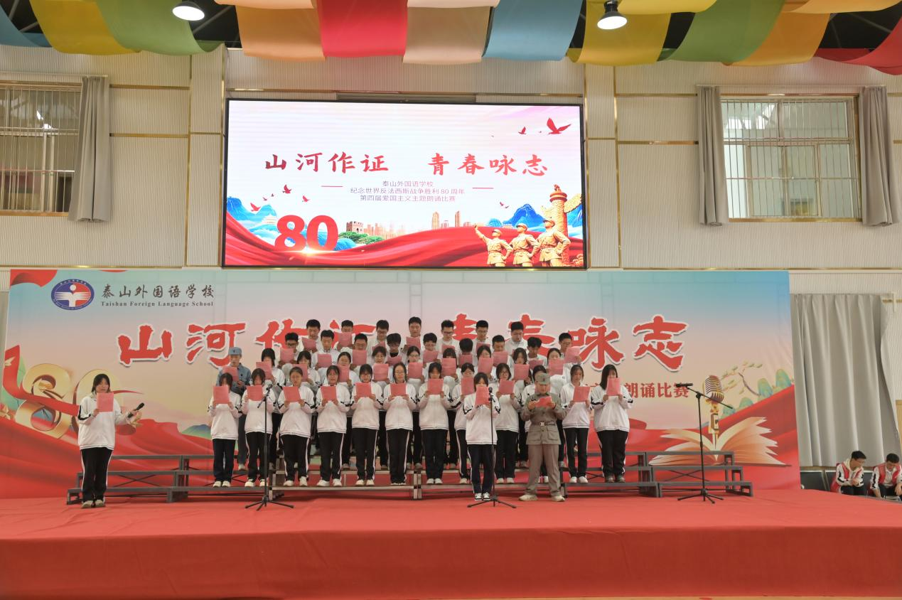 八十年岁月如歌,抗战精神历久弥新。在纪念中国人民抗日战争暨世界反法西斯战争胜利80周年的庄严时刻,为弘扬伟大抗战精神,落实立德树人根本任务,厚植青少年爱党爱国情怀,泰安市泰山外国语学校隆重举行“山河作证 青春咏志”主题朗诵比赛,以青春之声礼赞英雄史诗,用时代之音赓续红色血脉。