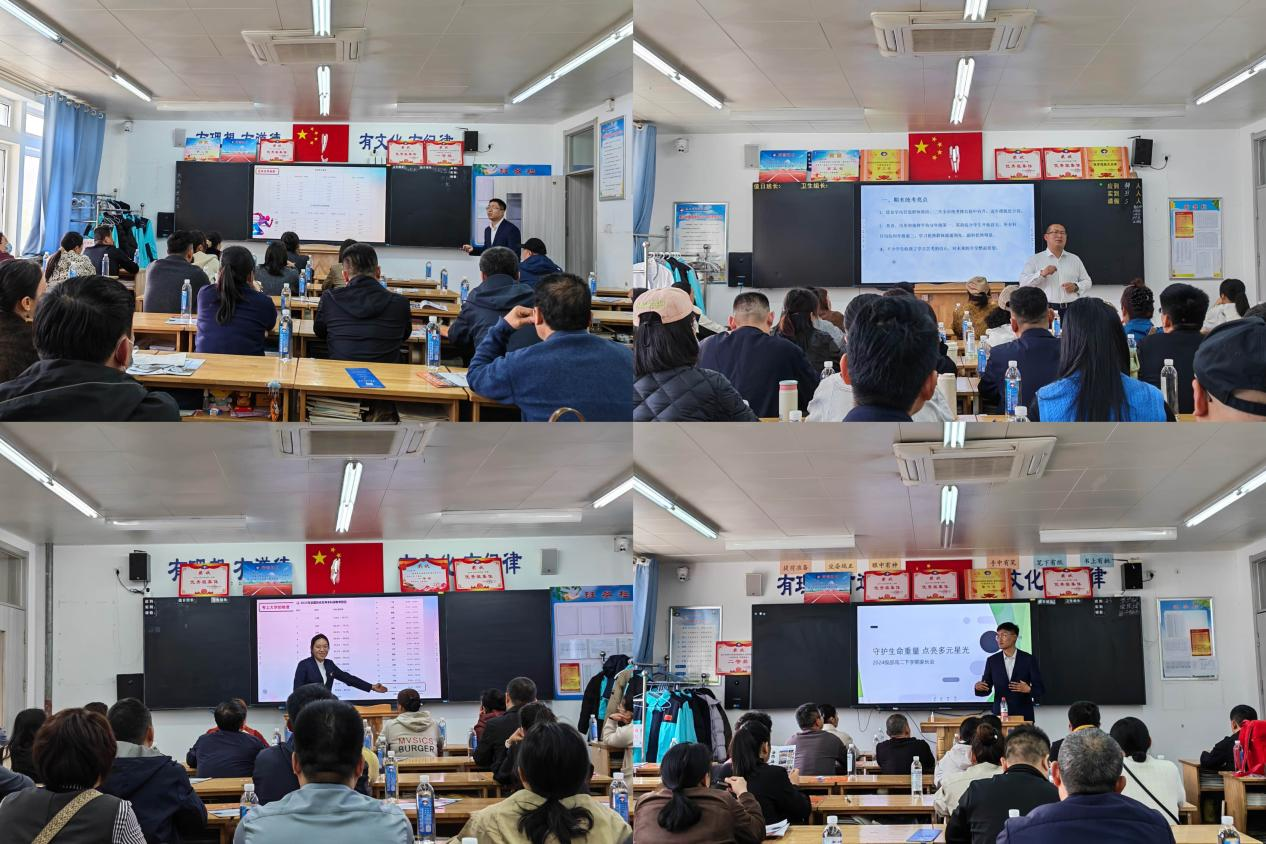 学校领导宋玉成、高秀泉、曲斌,2024级部主任梁军,副主任范维明、主任助理訾晓东等领导出席会议,与家长们共话成长、共谋未来。