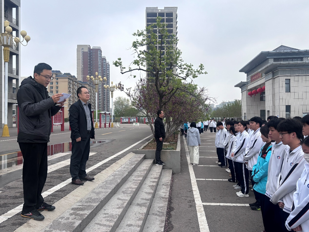 为确保演练活动顺利完成各项预定目标,级部专门制定了详细的消防疏散演练方案,对疏散路线、步骤流程、注意事项及突发事件应急处理等事项进行周密部署。演练前,訾晓东老师通过广播对学生和老师进行了动员和安全教育,确保每一位师生明确各自职责和行动要求。