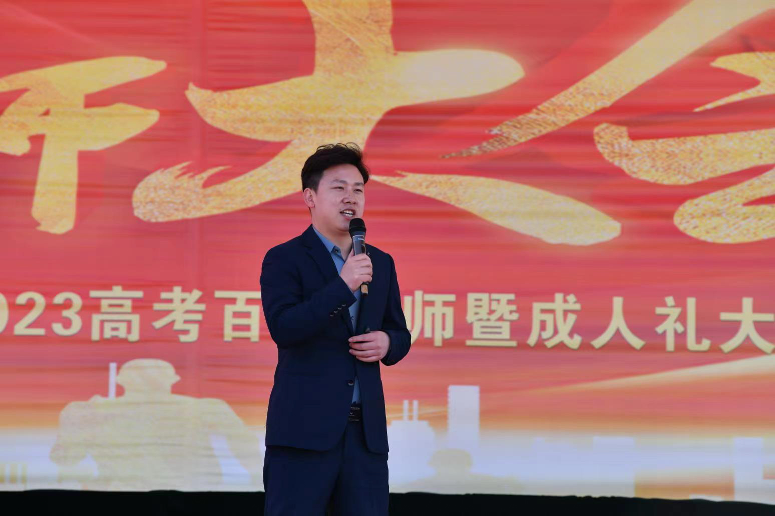 十八而立、百日冲刺,挑战极限、决胜高考。2月19日,在距离2023年高考还有107天的重要日子里,泰山外国语学校高三年级“成人礼暨高考百日誓师大会”隆重举行。学校校长助理、党政办主任徐东高老师,校长助理、教务处主任高秀泉老师,校长助理、学工处主任王建中老师,校长助理、复读部主任王教海老师,各年级主任张友强老师、纪维镇老师、鞠海峰老师,高三年级各班班主任、全体任课教师、全体学生及学生家长们参加了此次盛大活动。