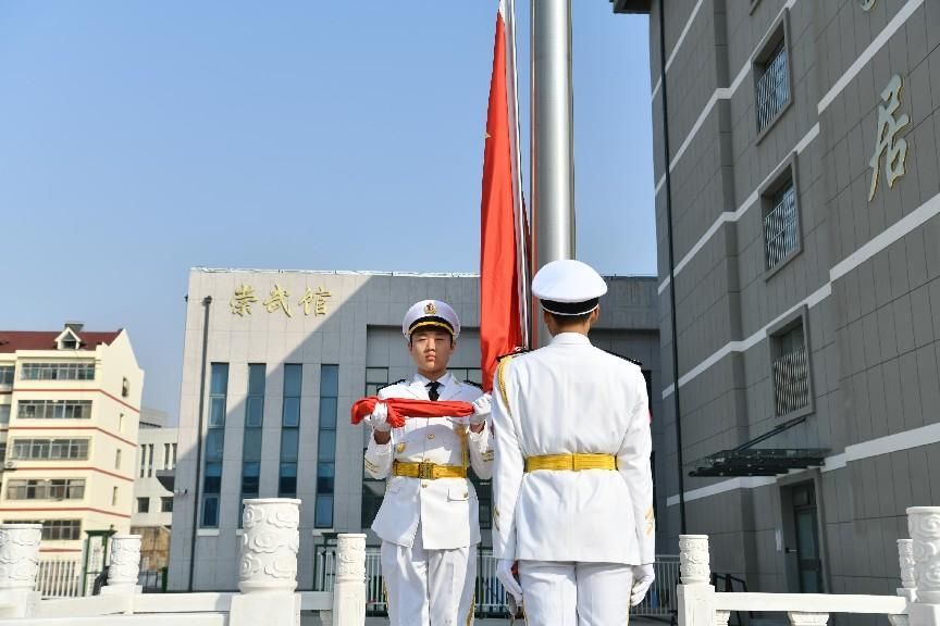 升国旗仪式,奏国歌,全体师生行注目礼