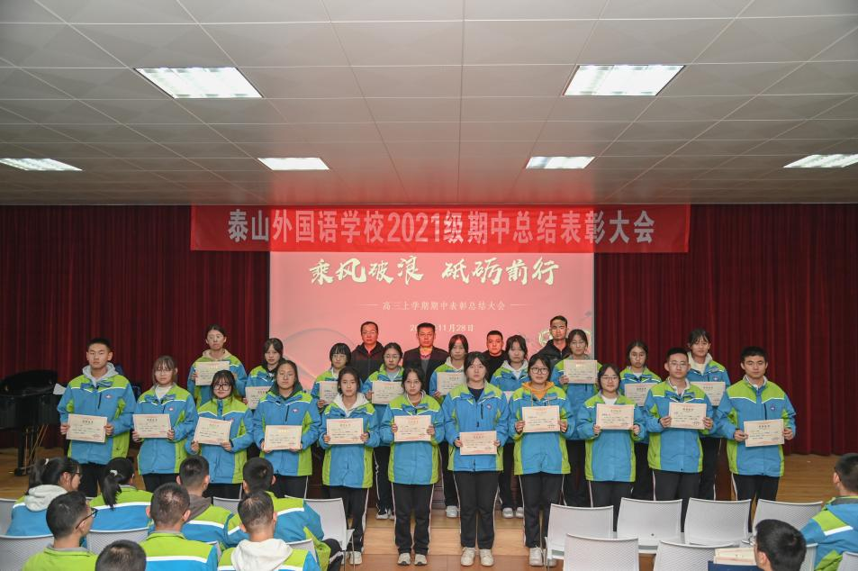 榜样力量无穷尽,尚学少年当勤勉。期中考试刚刚落下帷幕,为鼓励先进,营造良好学风,11月28日,2021级召开期中考试表彰总结大会,激励同学们勇于进取、超越自我,并以此作为新的起点,力争在今后的学习与生活中完善自我,成就更好的自己。年级主任张友强、常务副主任刘阳、教学主任范维明、德育主任于帅及2021级全体师生出席大会。