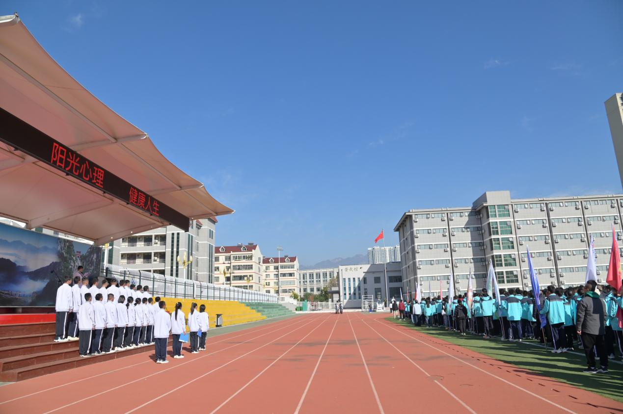 曲校长指出学校为营造一个温馨、和谐、健康的成长环境,为同学们开设了心理健康教育课程,设立了心理咨询室,配备了专业的心理咨询师,组织了丰富多彩的校园文化活动,他希望同学们呵护好自己的心灵,调整好自己的心态,让健康、幸福的阳光沐浴生活,做一个脸上有笑容、心中有阳光的中学生,争当德智体美劳全面发展的社会主义建设者和接班人。