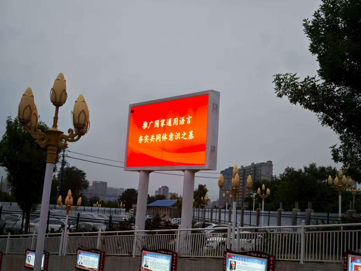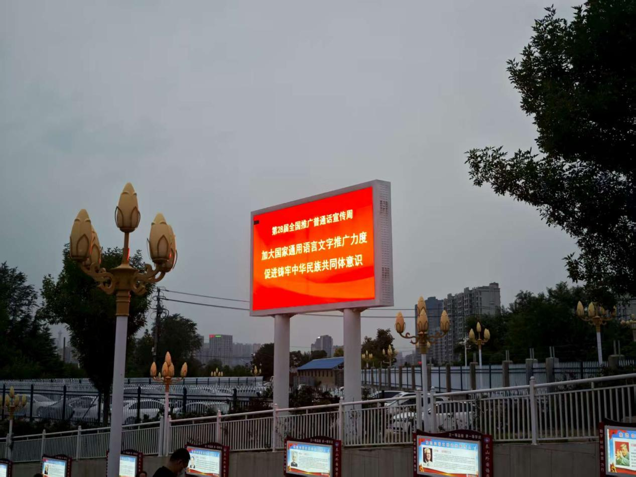 活动期间,学校在校内主要通道精心布置了推普周专题展板,系统展示普通话的发展历程和语言文字规范知识。同时,通过校外电子显示屏持续滚动播放推普周宣传标语,向社会传播“推广国家通用语言,夯实共同体意识之基”的理念,扩大了推普工作的社会影响力。