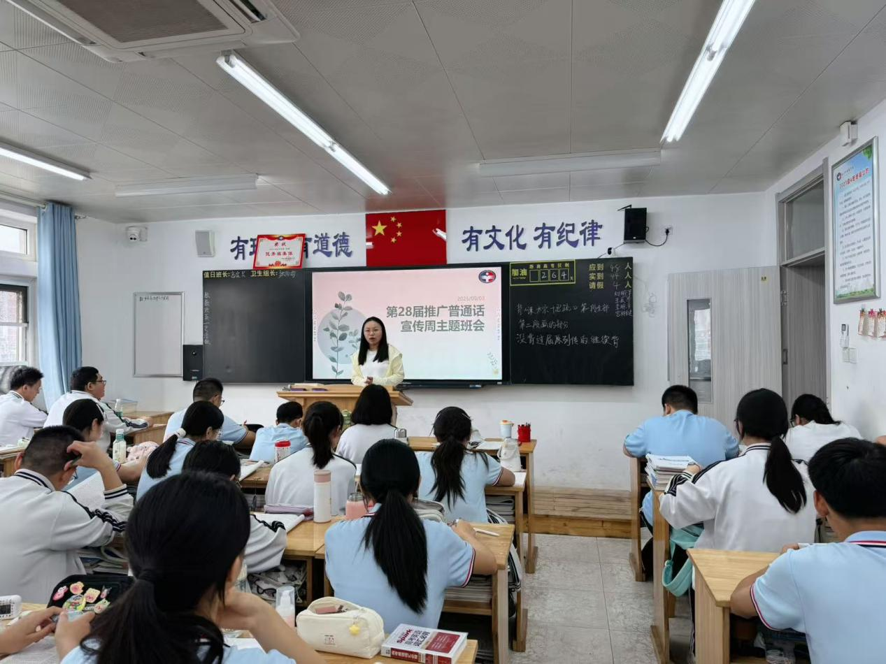 各班级组织开展的推普周主题班会精彩纷呈。通过观看推广普通话宣传片、开展语言文字知识竞赛、进行经典诗文诵读等形式,同学们深入了解了国家通用语言文字的重要价值,增强了语言规范意识和推广普通话的使命感。