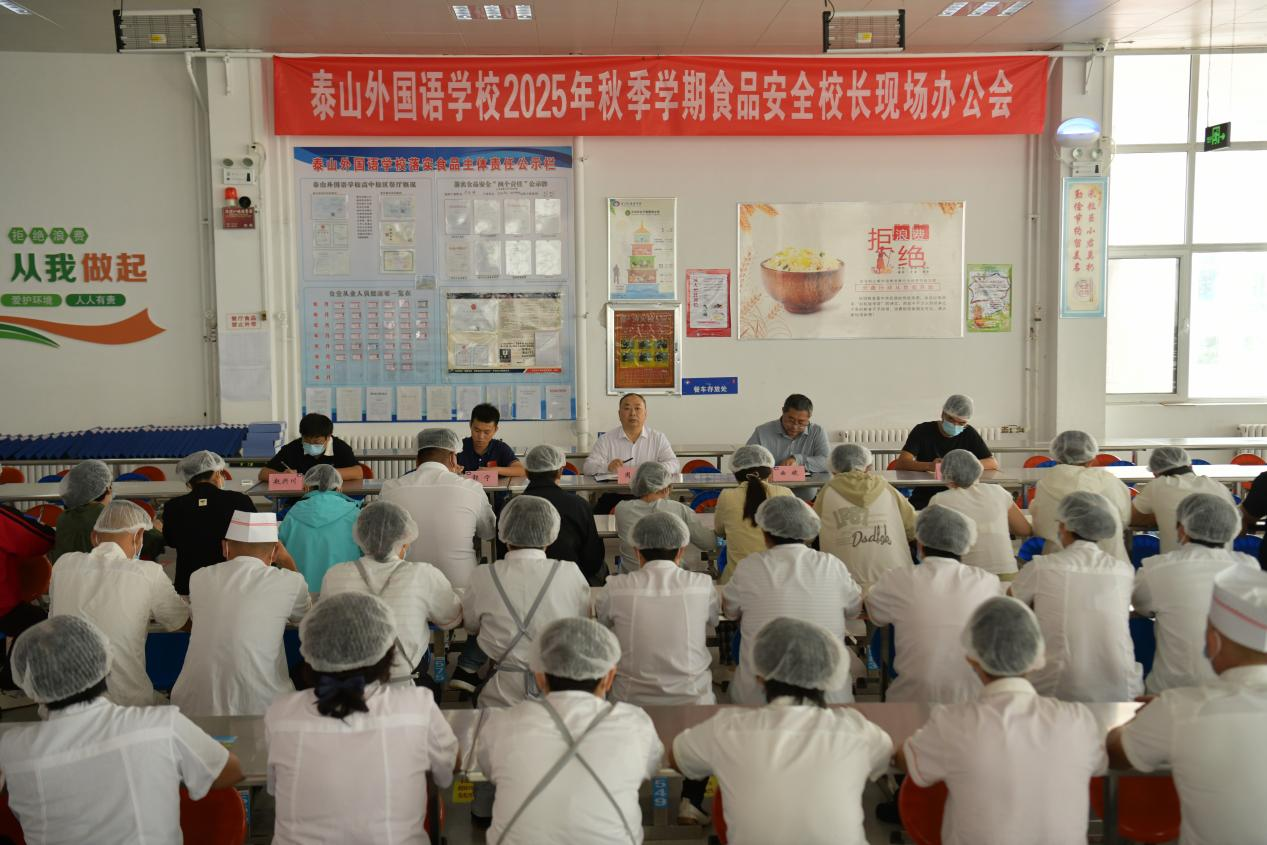 食品安全是校园工作的“生命线”。9月28日,泰山外国语学校聚焦师生“盘中餐”,召开食品安全校长现场办公会。学校办学顾问周军同志、副校长曲斌带队深入食堂一线,用“实地检查+现场办公”的方式排查隐患,总务处全体成员、食堂全体员工全程参与,将问题解决在现场,把责任压实到岗位,筑牢秋季校园食安防线。