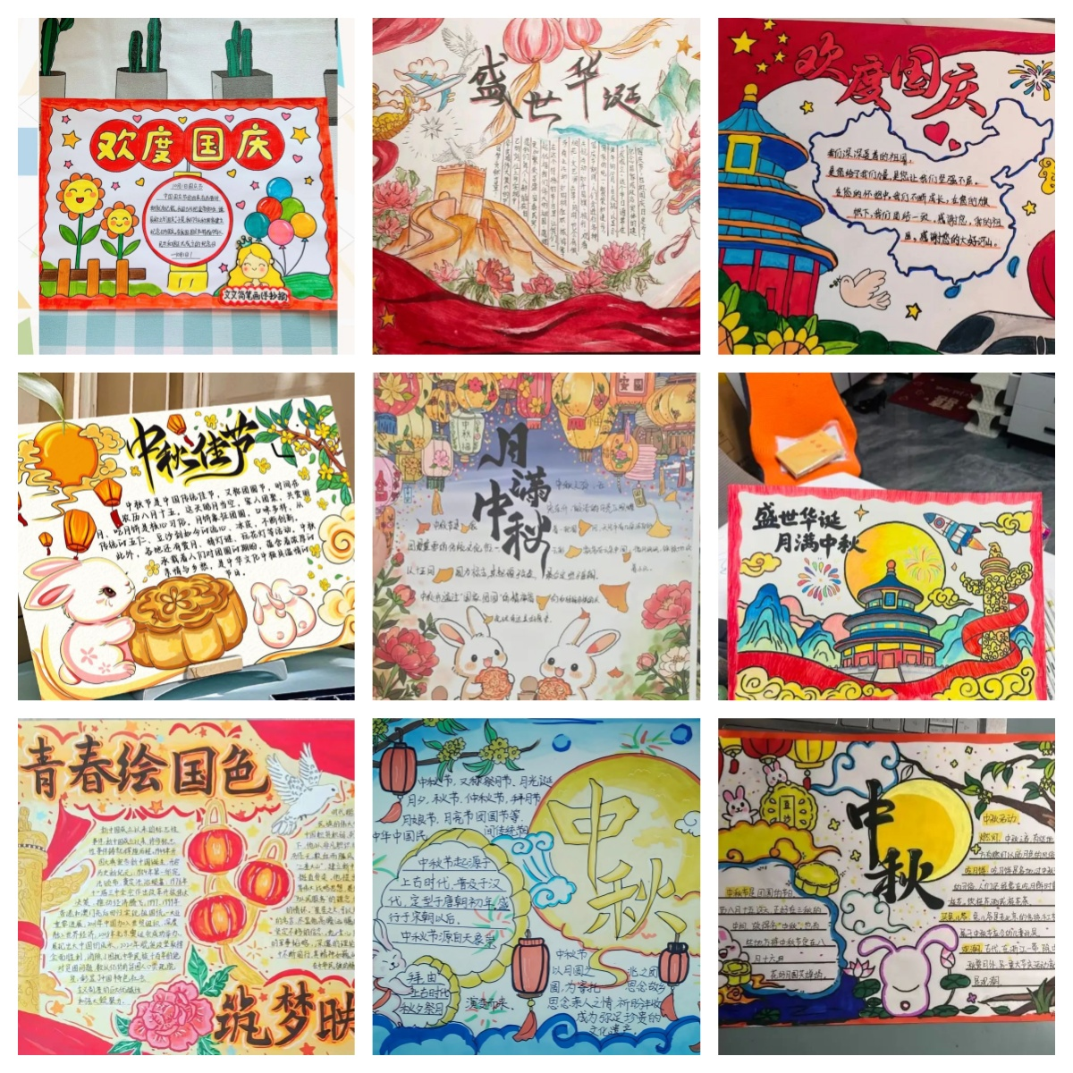 同学们充分发挥想象力与创造力,用画笔和文字将壮丽的天安门、飘扬的五星红旗等国家象征,与圆月、灯笼、月饼、家人团聚等温馨的中秋元素巧妙融合。一幅幅精美的手抄报,不仅是艺术才华的展示,更是同学们对国泰民安、家国团圆最真挚的情感表达。
