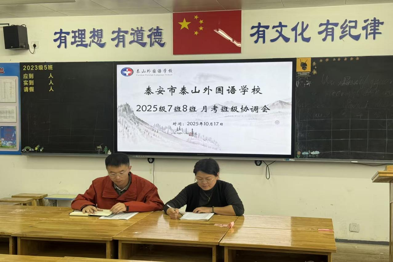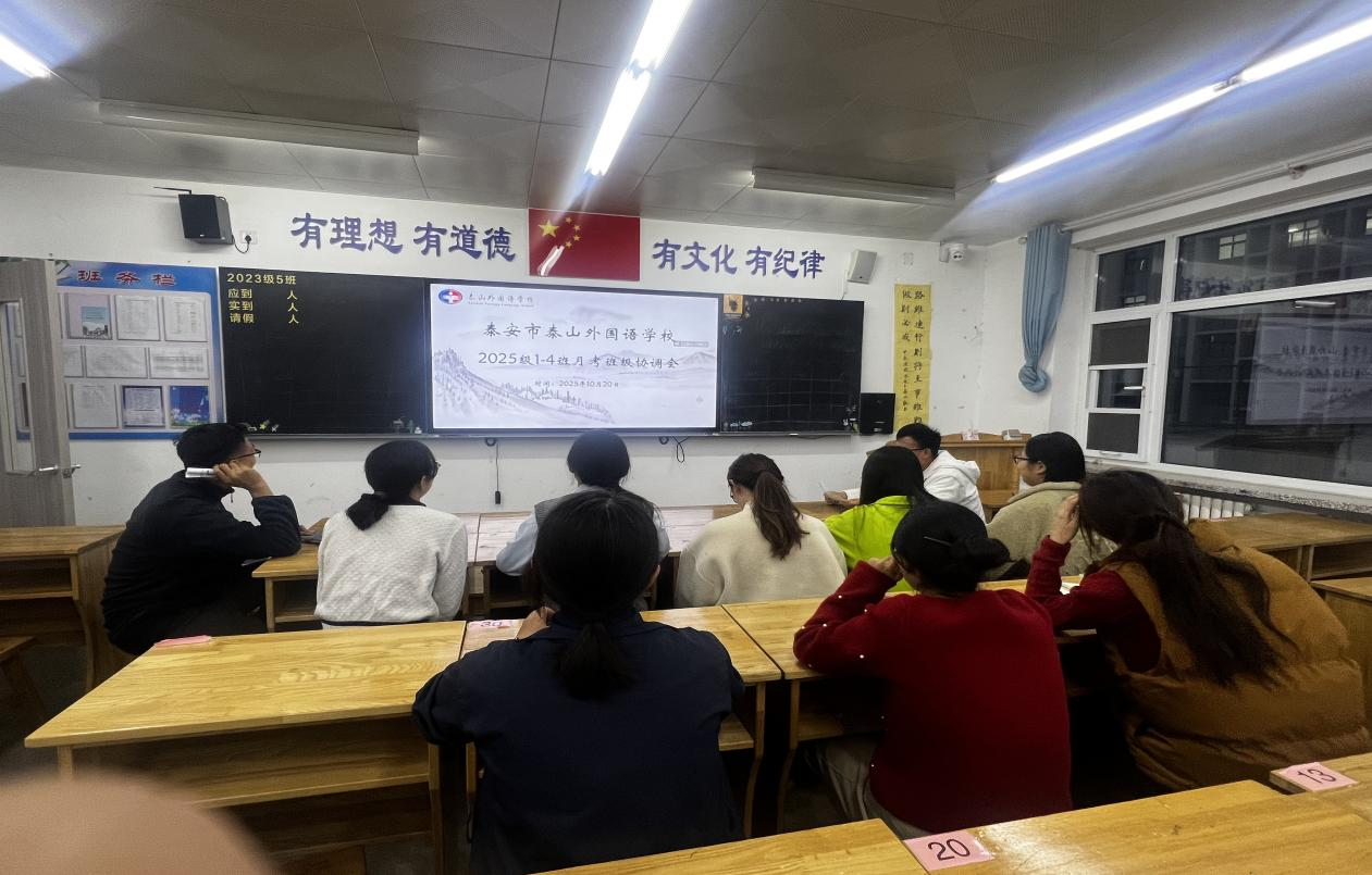为精准把握学情、优化教学策略,近期,泰安市泰山外国语学校 2025 级部以 “数据赋能、协同共进” 为目标,组织召开 10 月月考成绩分析会。本次会议采用 “两两结对” 模式,10 个教学班级两两联动召开班级协调会,班主任、学科教师齐聚一堂,在交流碰撞中明确方向,为下一阶段教学管理注入新动能。