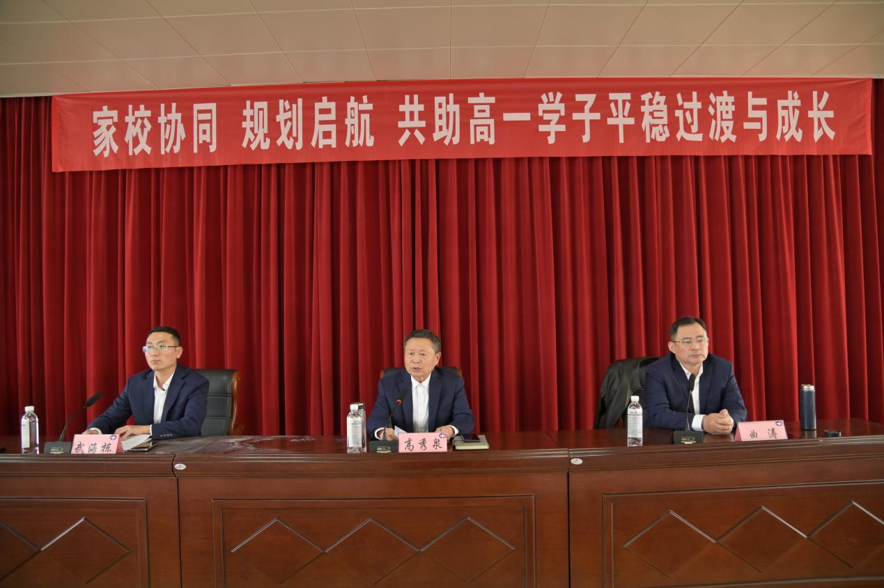金秋十月,硕果初绽。为搭建学校与家庭沟通的桥梁,助力高一学子平稳过渡高中生活、明确成长方向,10月24日下午,泰山外国语学校2025级部召开高一上学期第一次家长会。本次家长会分两个阶段,第一阶段在教学楼6楼报告厅召开全体家长会,第二阶段在各班召开本班家长会。泰山外国语学校副校长、教务处主任高秀泉,国家生涯规划师、国家二级心理咨询师、山东科技大学客座教授曲涛院长,2025级部主任武海栋及高一年级全体学生家长、班主任共同参与。