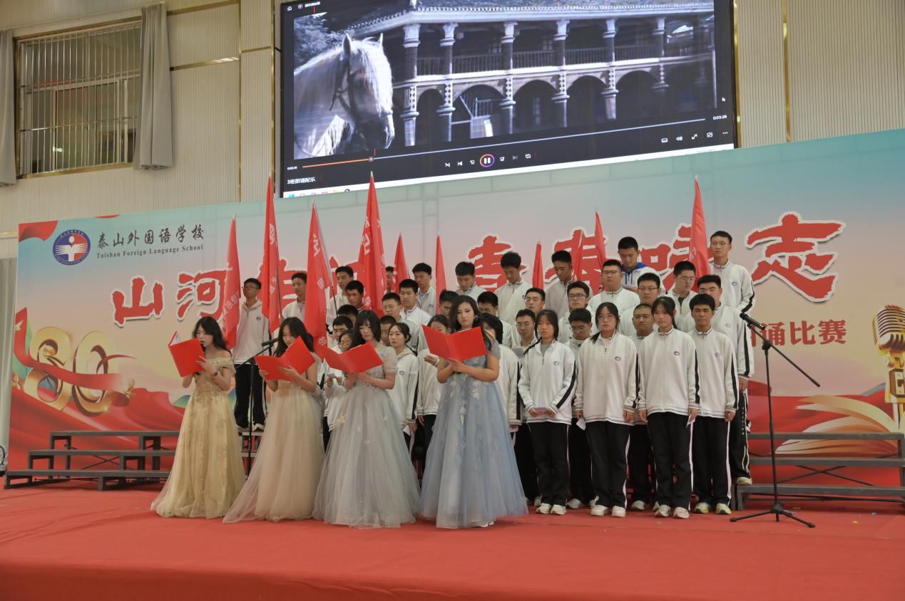 各班精心设计,融合背景影像、情景演绎、红歌合唱与主题配乐,打造出沉浸式、立体化的思政育人场景。个人朗诵字字千钧,集体合诵气势磅礴,充分彰显了泰外学子深沉的历史自觉与坚定的时代担当。