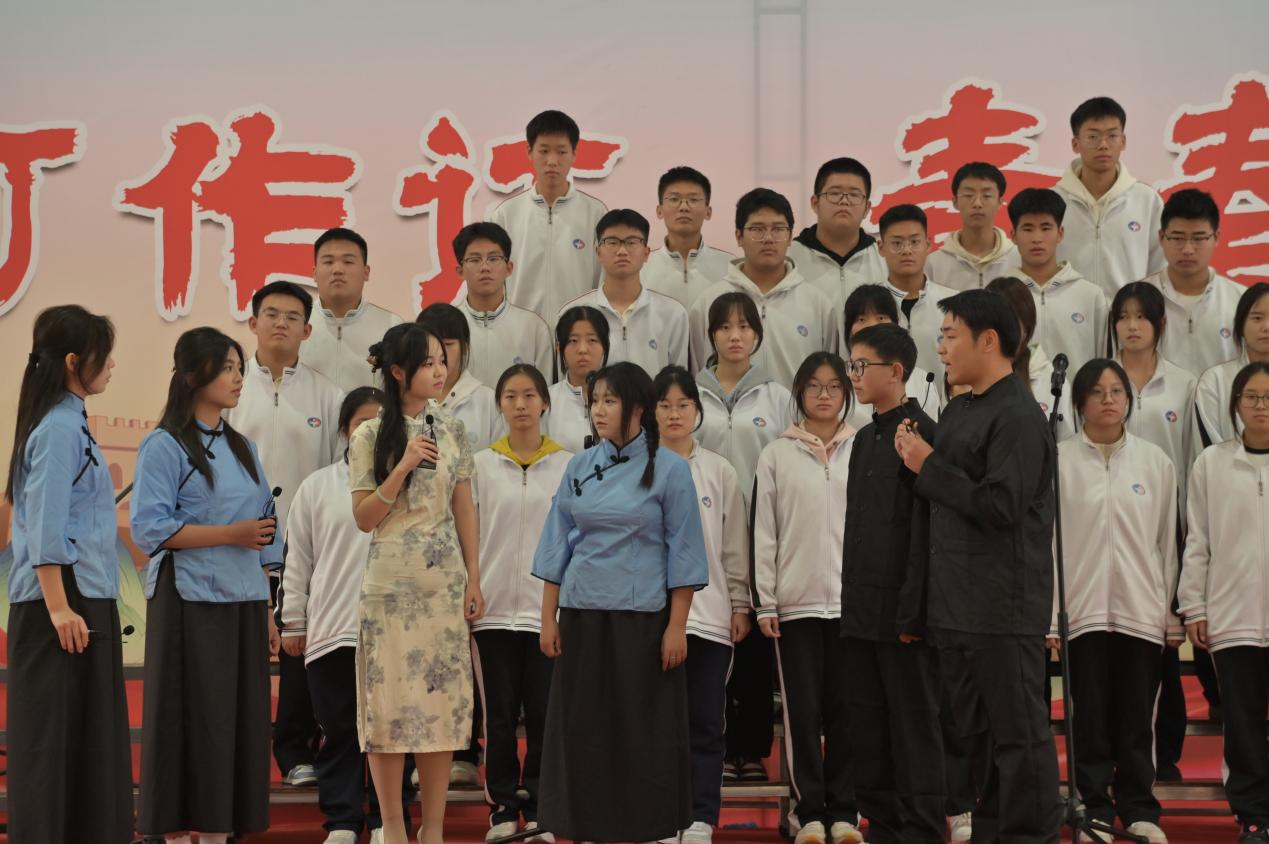 赛场上,二十四个班级依次登台,将舞台化作穿越历史的长廊。从烽火连天的救亡岁月到新时代青年对英烈的深情告白,同学们以声传情、以情动人,时而慷慨激昂如惊雷破空,时而低回深沉似江河奔涌,在声音的叙事中再现了中华民族不屈抗争的壮阔画卷。