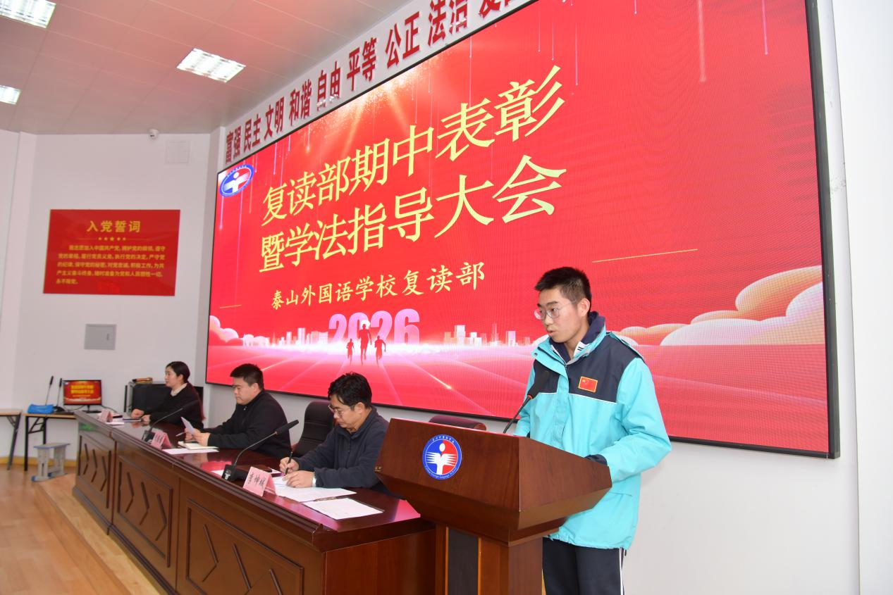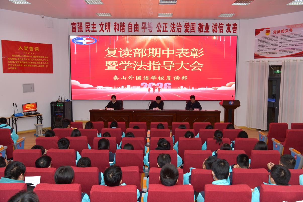 金秋酿硕果,奋进正当时。为总结半学期教学成效,表彰先进榜样,夯实德育根基,明确后续奋进方向,近日,泰山外国语学校复读部隆重召开期中考试总结表彰暨学法指导大会。复读部领导及全体师生齐聚一堂,共话成长、共谋新篇,为复读之路注入强劲动力。