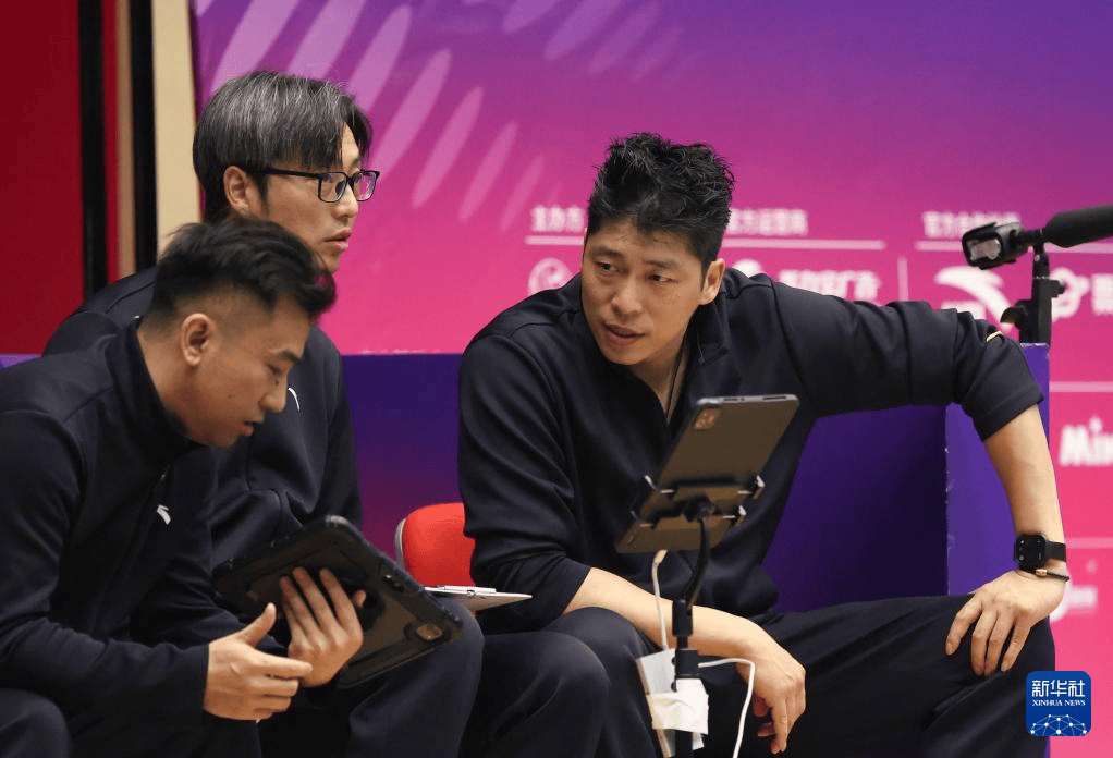 3月19日,上海光明(ming)队主锻练沈琼(右)在(zai)比赛中与工作(zuo)人(ren)员交(jiao)换(huan)。