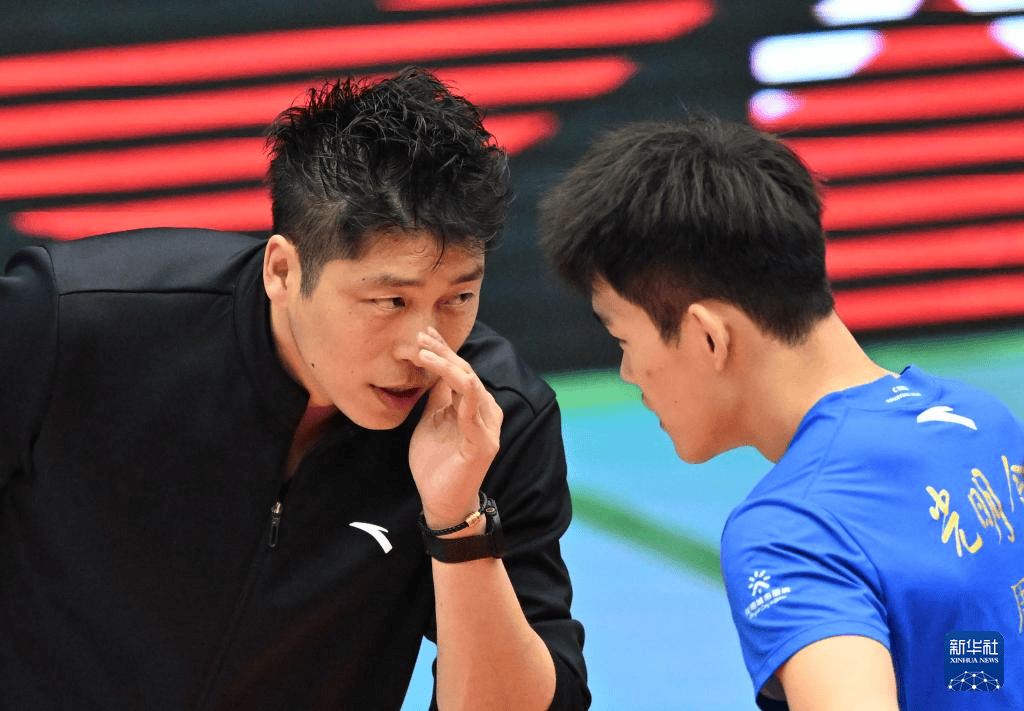 3月19日,上海光明(ming)队主锻练沈琼(左)在(zai)比赛中指导球员周鑫。